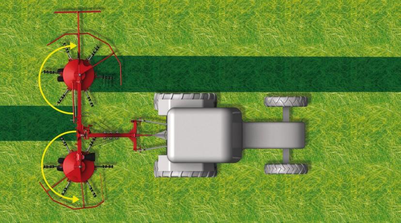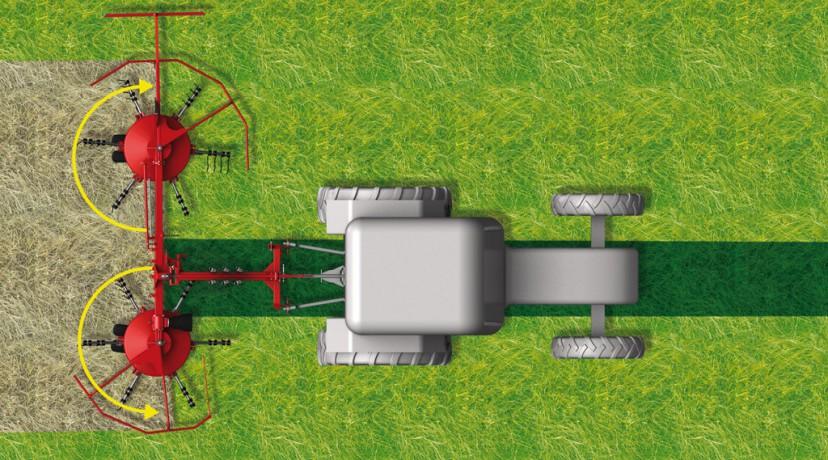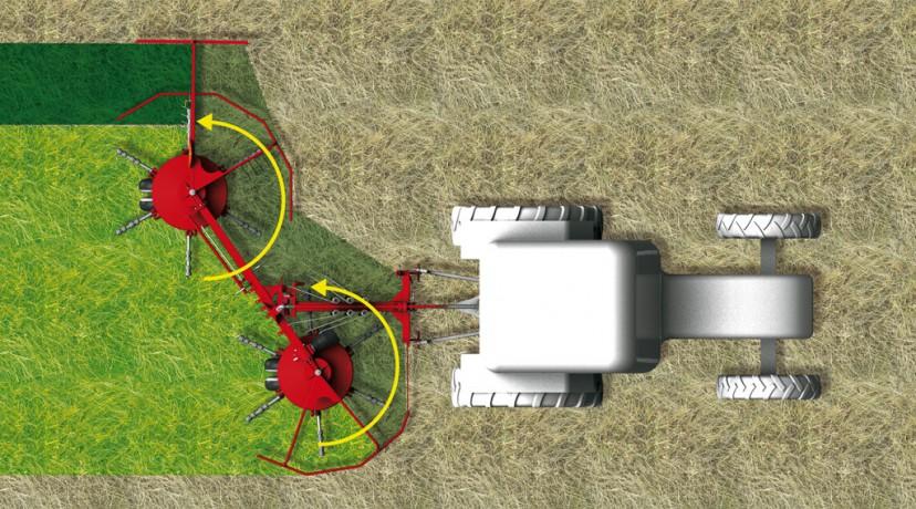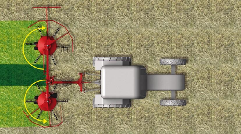 Задвижването на роторните сеносъбирачи от карданния вал премахва необходимостта от контакт със земята. Следователно моделите се справят много по-добре с по-влажни и тежки фуражни култури, освен че се справят отлично и със сухото сено. Липсата на досег със земята пази работните органи от износване и минимизира замърсяванията на фуража.